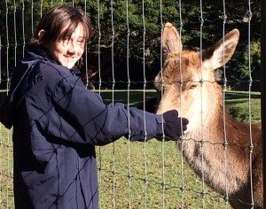 G petting a deer